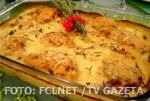 Em um refratário, coloque: uma camada de molho; uma camada de banana; uma camada de molho; uma camada com 5 filés; camada de molho; camada de banana; camada de molho; camada de 5 filés; o resto do molho e queijo para gratinar. Coloque no forno a 180ºC por 15 a 20 minutos. Pode ser servido com arroz branco.