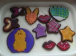 Esse lote de biscoitos já foram decorados com esse glace e também fiz a massa de chocolate pela primeira vez.