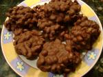 Modo de Preparo Derreter os chocolates no microondas ou em banho-maria, misturar o amendoim.Forrar uma tábua de carne com o filme plástico bem esticado. Colocar as colheradas e deixar secar.