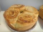 Pra fazer a rosca eh facil. Abra a massa em uma superficie lisa, coloque o recheio e enrole a massa fazendo um rocambole. Depois corte em partes. Eu dividi em 6 e deu certinho na minha forma de 21,5 cm do Brasil. Entao acomodei as 6 partes dentro da forma, uma ao lado da outra. As partes se uniram enquanto assavam pq cresceram mais com o calor do forno, e qdo terminou estavam grudadinhas.