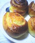 Bater todos os ingredientes no liquidificador, menos a farinha de trigo. Colocar esta mistura em um refratário e ir sovando a massa e adicionando a farinha até formar uma massa homogênea (a massa deverá grudar nas mãos). Deixa crescer por 1 hora. Moldar as rosquinhas, adicionar o recheio, deixar crescer por mais 20 minutos. Untar a fôrma com margarina e assar em forno pré-aquecido à 150º até dourar.