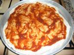 coloco primeiro o bacon num prato entre dois guardanapos de papel e vai ao microondas por 2 minutos para saltear um pouco e retirar a gordura(fica agarrada aos guardananapos, depois vou colocando os ingredientes por ordem...no prato do microondas